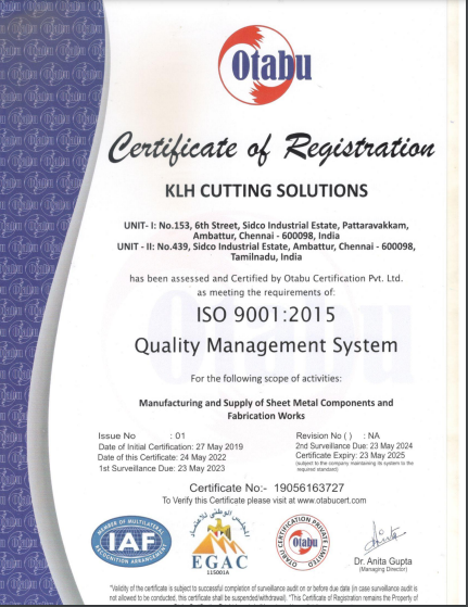 KLH Cutting Solution : ISO- 9001:2015 CERTIFIED COMPANY